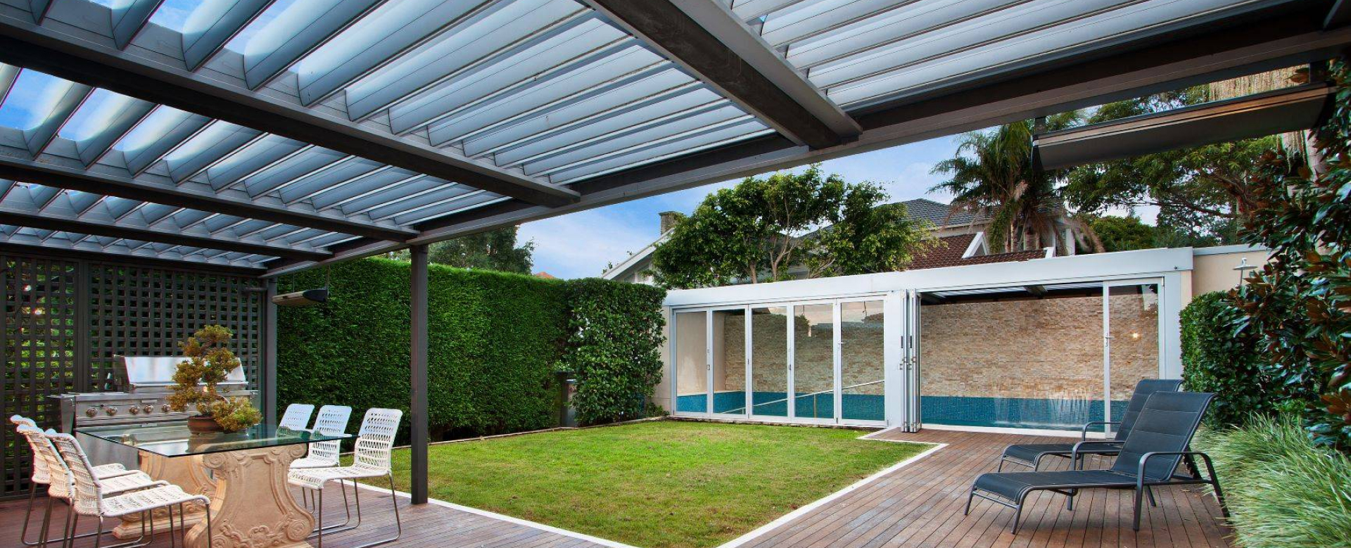 - Pergola bioclimatique sur jardin pour terrasse